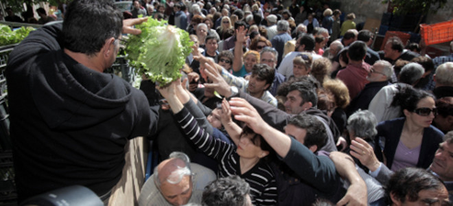 Πανζουρλισμός, με κόσμο που ποδοπατείται επικρατεί από το πρωί στις λαϊκές αγορές, όπου οι παραγωγοι μοιράζουν δωρεάν, συνολικά, 65 τόνους φρούτων και λαχανικών, αλλά και ψάρια. Μάλιστα, στον...Κολωνό, όπου οι πολίτες έσπασαν τη σειρά προτεραιότητας και άρχισαν να σπρώχνονται, σημειώθηκαν και λιποθυμίες.