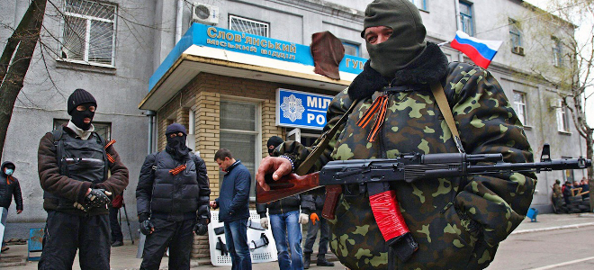 Το ΝΑΤΟ χαρακτήρισε «σοβαρή εξέλιξη» την παρουσία στην ανατολική Ουκρανία ανδρών με ρωσικά όπλα και όμοιες στολές παραλλαγής χωρίς διακριτικά, σαν αυτές που φορούσαν οι Ρώσοι στρατιώτες όταν κατέλαβαν την Κριμαία.