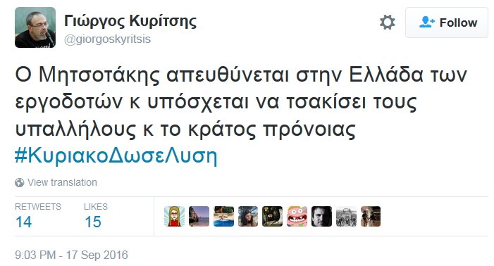 - αυτός που επινόησε το χάσταγκ #ΚυριακοΔωσεΛυση πρέπει να του έστειλα αυξημένο ΕΝΦΙΑ χαχαχε