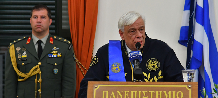 Κατά την άφιξη του Προέδρου της Δημοκρατίας στο πανεπιστήμιο και στο κατάμεστο αμφιθέατρο «Νικόλαος Γ. Πολίτης», τον υποδέχθηκαν ο Πρύτανης καθηγητής Κωνσταντίνος Μασσέλος, ο πρόεδρος του τμήματος Ιστορίας - Αρχαιολογίας αναπληρωτής καθηγητής Νικόλαος Ζαχαριάς και ο αναπληρωτής καθηγητής Αθανάσιος Χρήστου.