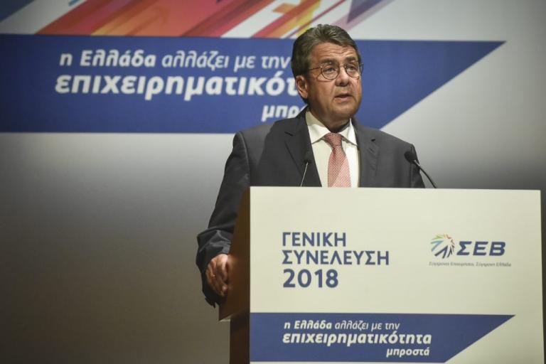 Ο κ. Γκάμπριελ εκτίμησε ότι η ανάπτυξη εφέτος προβλέπεται να είναι πάνω από 2% και κάλεσε τη Γερμανία να είναι έτοιμη να επενδύσει και να εμπιστευτεί την Ελλάδα. Θα καταφέρουμε, κατέληξε, να διατηρήσουμε τις ευρωπαϊκές οικονομίες δημοκρατικές και σταθερές, αν συνδυάσουμε την οικονομική επιτυχία με την κοινωνική ασφάλεια – τονίζοντας χαρακτηριστικά, ότι η Ευρώπη είναι χορτοφάγος σε έναν κόσμο σαρκοφάγων, καθώς δεν έχει αναπτύξει την δική της γεωστρατηγική και θεωρείται πλούσια αλλά αδύναμη ήπειρος.