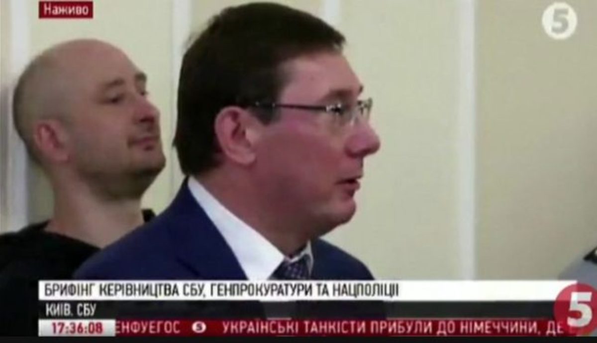 Ο Βασίλι Γκρίτσακ, επικεφαλής των υπηρεσιών ασφαλείας της Ουκρανίας ανακοίνωσε στην συνέντευξη Τύπου ότι σκηνοθέτησαν τον θάνατο του δημοσιογράφου για να μπορέσουν να πιάσουν τους επίδοξους δολοφόνους του! Πρόσθεσε μάλιστα ότι υπήρχε σχέδιο δολοφονίας από τις ρωσικές μυστικές υπηρεσίες και ότι όλο αυτό στήθηκε για να ξεσκεπαστούν οι ρώσοι πράκτορες! Ο Μπαμπτσένκο εμφανίστηκε και ο ίδιος στην συνέντευξη Τύπου και ευχαρίστησε όσους θρήνησαν για τον χαμό του!