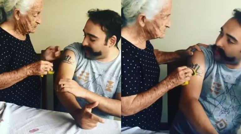 «Βγάλτο! Αυτά είναι του διαβόλου πράγματα. Τι είναι; Θα στο καθαρίσω!», λέει η μητέρα του άνδρα που πρωταγωνιστεί στο βίντεο σε κατάσταση σοκ. Τόσο ο γιος της όσο και ο εγγονός της την κοιτούν και προσπαθούν να συγκρατήσουν τα γέλια τους, αφού γνωρίζουν πολύ καλά ότι το τατουάζ δεν βγαίνει με σφουγγάρι, σαπούνι και νερό!