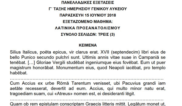 Για τα θέματα Λατινικών εσπερινών ΓΕΛ