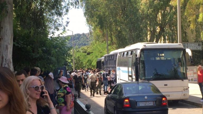 Τα μέλη του Ρουβίκωνα μεταφέρθηκαν στα δικαστήρια με λεωφορείο. Η μεταγωγή των 20 συλληφθέντων έγινε υπό δρακόντια μέτρα ασφάλειας.