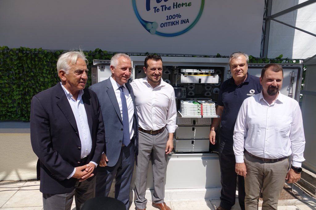 Ο Υπ. ΨΗΠΤΕ @nikospappas16 & ο ΓΓ Τηλεπικοινωνιών @maglarasv στην εκδήλωση για την ενεργοποίηση της πρώτης σύνδεσης οπτικής ίνας στο σπίτι.