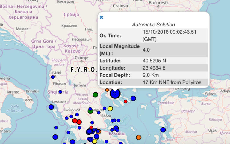 - Λίγο μετά τις 12 το μεσημέρι σεισμός ταρακούνησε τη Χαλκιδική - Ο σεισμός ήταν επιφανειακός με εστιακό βάθος στα 2 χιλιόμετρα - Κοντά στον Πολύγυρο το επίκεντρο, αισθητή και στη Θεσσαλονίκη η σεισμική δόνηση - Ακολούθησαν τρεις μετασεισμοί σε διάστημα ελάχιστων λεπτών