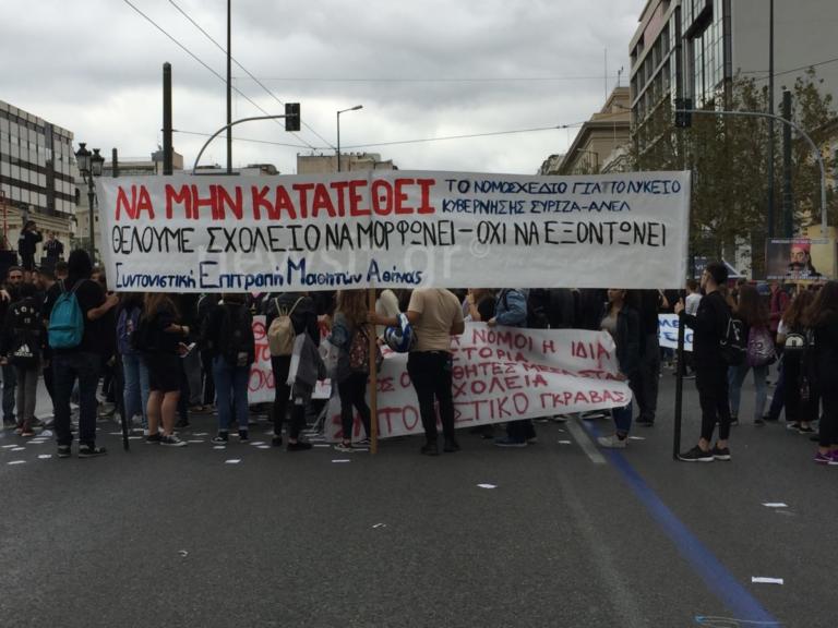 από το ύψος της οδού Σίνα. Οι μαθητές πραγματοποιούν συλλαλητήριο ενάντια στο σχέδιο της κυβέρνησης για το Λύκειο και αίτημα να μην κατατεθεί το σχετικό νομοσχέδιο.