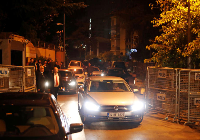 Τα μέλη της τουρκικής ομάδας, τα οποία συνόδευσε στην έρευνά τους μια σαουδαραβική αντιπροσωπεία, μπήκαν στα αυτοκίνητά τους ξημερώματα και αποχώρησαν από το προξενείο. Μαζί τους πήραν διάφορα δείγματα, μεταξύ άλλων και από τον κήπο του κτιρίου της σαουδαραβικής διπλωματικής αντιπροσωπείας, ανέφερε ένας αξιωματούχος έξω από το προξενείο.