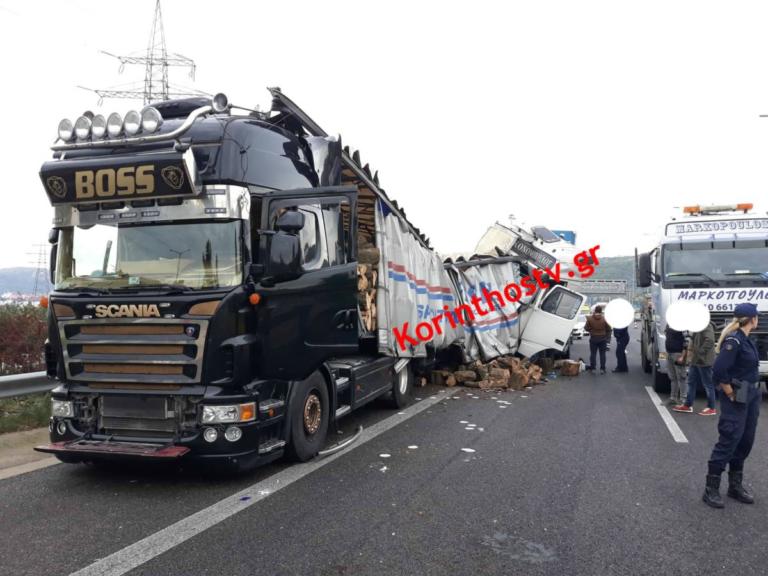 Οδηγός νταλίκας έχασε τον έλεγχο του οχήματός του και έπεσε πάνω σε προπορευόμενη νταλίκα φορτωμένη με ξύλα. Η κυκλοφορία στο σημείο διακόπηκε.