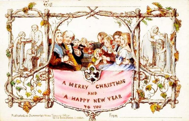 Η πρώτη χριστουγεννιάτικη κάρτα λέγεται ότι τη δημιούργησε για τον φίλο του Sir Henry Cole. Μία έκδοση 1.000 καρτών βγήκε προς πώληση στο Λονδίνο.