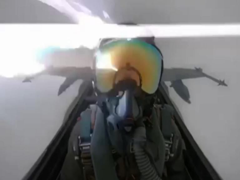 Το βίντεο αναρτήθηκε στο Instagram από έναν πιλότο μαχητικών από το Κουβέιτ, ο οποίος αποφάσισε να δείξει την τρομακτική εμπειρία του ενώ βρισκόταν στον αέρα.