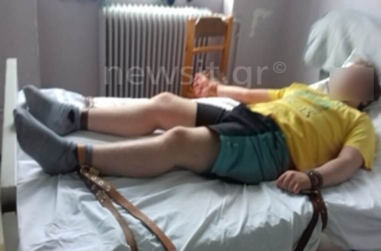 “Ο γιος μου νοσηλεύεται εδώ και ένα χρόνο στο Δρομοκαΐτειο, δεμένος χειροπόδαρα. Η ζωή του γιου μου εδώ, περνάει σχεδόν όλες τις ώρες της ημέρας μέσα στο θάλαμο. Όταν έρθω ή εγώ η ο πατέρας του και τον λύσουμε, θα τον πάμε μια βόλτα, ή αν έρθουν οι νοσηλευτές από τον κρατικό φορέα και τον κάνουν κι αυτοί μια βόλτα, μέχρι την αυλή του νοσοκομείου, μέχρι τα παγκάκια ή μέχρι το κυλικείο. Δεν υπάρχει άλλη ζωή γι’ αυτό το παιδί. Δηλαδή, ή θα είναι στο δωμάτιο δεμένος ή στο ένα άκρο ή στα δύο άκρα ή στα τρία άκρα ή και στα τέσσερα, ανάλογα με τη συμπεριφορά του, ή θα βγούμε μία βολτίτσα εδώ στο προαύλιο στο Δρομοκαΐτειο. Τις τελευταίες μέρες, λόγω ζέστης όλες οι ψυχιατρικές παθήσεις έχουν διέγερση, είναι διεγερτικός και μου λέει συνέχεια ότι θέλει να φύγει από εδώ” λέει, μιλώντας στο newsit.gr, η μητέρα του 20χρονου Βασίλη, Παναγιώτα Λιόλιου και οι φωνές του παιδιού της, που ακούγονται από την άλλη άκρη της τηλεφωνικής μας γραμμής επιβεβαιώνουν με τον πιο τραγικό τρόπο αυτά που μας λέει.