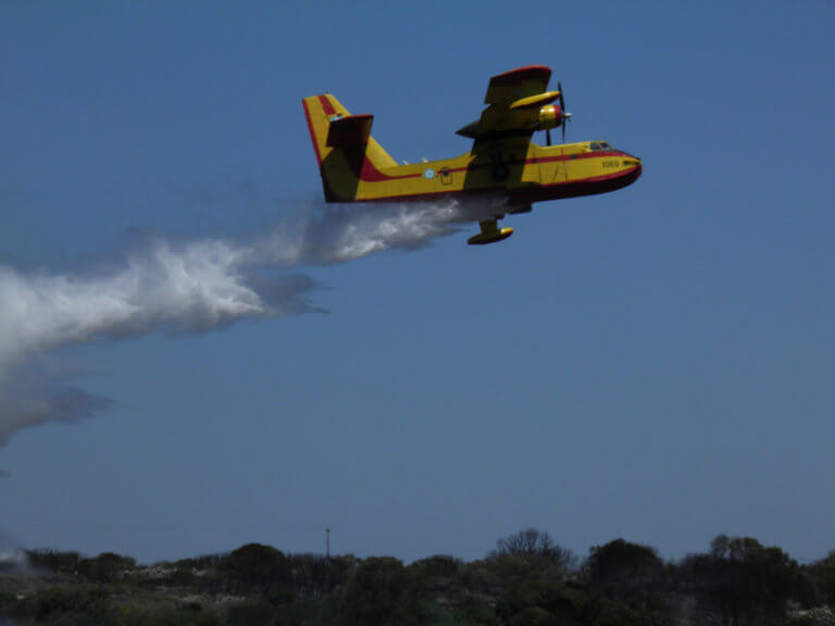 Σύμφωνα με πληροφορίες η φωτιά βρίσκεται ανάμεσα στο Λαγονήσι και στα Καλύβια, και προς το παρόν καίει χαμηλή βλάστηση και λίγα πεύκα.