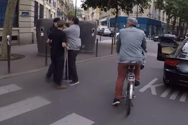 Στο βίντεο που κυκλοφόρησε ευρέως στο Διαδίκτυο φαίνεται καθαρά ένα μαύρο αυτοκίνητο να αρνείται να παραχωρήσει προτεραιότητα σε έναν τυφλό και τον συνοδό του που βρίσκονται ήδη πάνω στη διάβαση. Το όχημα περνάει ξυστά δίπλα τους και ο συνοδός το χτυπάει στην οροφή. Ο οδηγός τότε σταματάει το αυτοκίνητο, κατεβαίνει και βρίζοντας, επιτίθεται στον συνοδό ενώ δεν διστάζει να χτυπήσει και τον τυφλό. Ένας αυτόπτης μάρτυρας καθώς και μια κυρία που βρίσκεται μέσα στο αυτοκίνητο προσπαθούν να παρέμβουν.