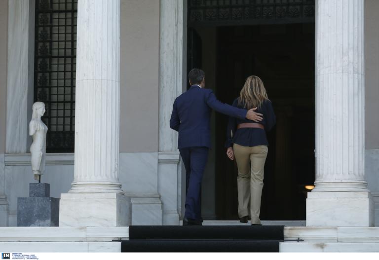 Το πρωθυπουργικό ζεύγος πήγε με τα πόδια στο Προεδρικό για την ορκωμοσία της νέας κυβέρνησης και με τον ίδιο τρόπο… επέστρεψε μετά το τέλος της τελετής. Μάλιστα, κατά την επιστροφή τους στο Μαξίμου, ο Κυριάκος Μητσοτάκης έκανε μια τρυφερή κίνηση προς τη Μαρέβα.