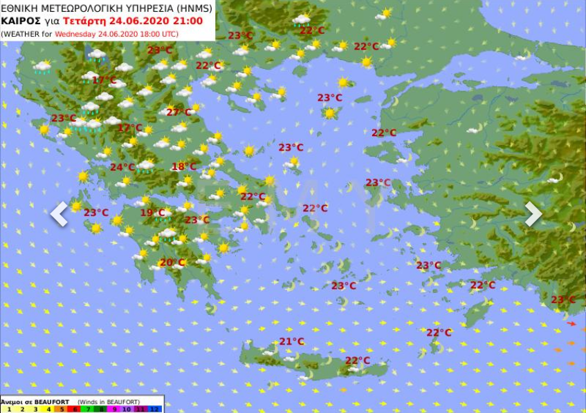 Θερμοκρασία: Από 18 έως 29 βαθμούς Κελσίου. Στην Ήπειρο 3 με 4 βαθμούς χαμηλότερη.