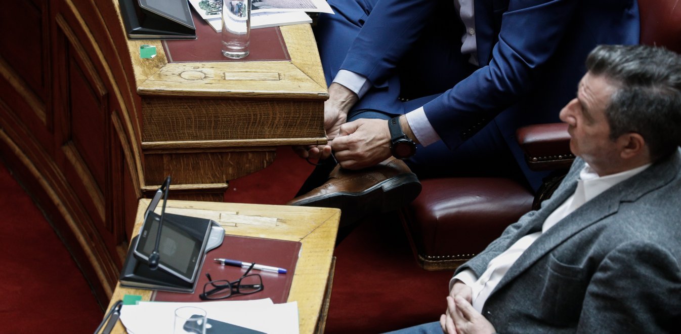 Μπορεί το ενδιαφέρον να μονοπωλεί το νομοσχέδιο για τις διαδηλώσεις, το οποίο ψηφίζεται την Πέμπτη, 9 Ιουλίου, όμως ο φακός των φωτογράφων «συνέλαβε» εκείνα τα στιγμιότυπα που θα δώσουν τροφή για παρασκήνιο και θα αναδείξουν τις πιο χαλαρές στιγμές των πολιτικών. Με δεδομένο ότι η πολιτική αντιπαράθεση αναθερμάνθηκε με τη σύγκρουση ανάμεσα στον Κυριάκο Μητσοτάκη και τον Αλέξη Τσίπρα να συγκεντρώνει τα περισσότερα φώτα, ο φακός του πρακτορείου Eurokinissi αποτύπωσε κάποια καρέ πιο χαλαρών στιγμών: Από τα κορδόνια που πιάστηκε να δένει ο Αλέξης Τσίπρας μέχρι το plexiglass με τον Κυριάκο Μητσοτάκη, τον Μιχάλη Χρυσοχοΐδη δίπλα στον πρωθυπουργό έως την κουβέντα του Γιάννη Ραγκούση με τον Αλέξη Τσίπρα...