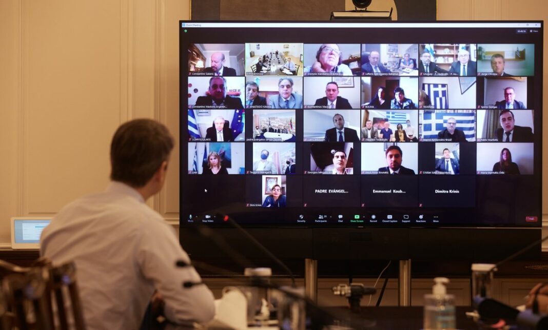 Σε τηλεδιάσκεψη με τους εκπροσώπους των ελληνικών κοινοτήτων της Λατινικής Αμερικής συμμετείχε ο πρωθυπουργός Κυριάκος Μητσοτάκης.