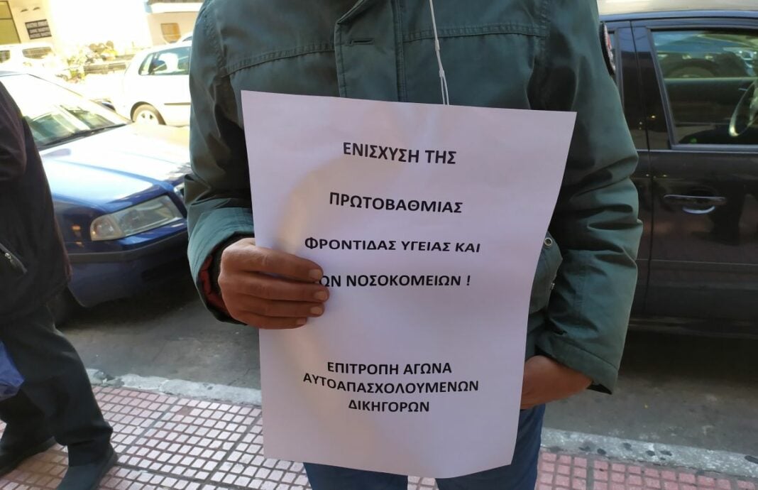 Παράσταση διαμαρτυρίας για τις συνθήκες εργασίας τους στα δικαστήρια, πραγματοποίησαν σήμερα δεκάδες αυτοαπασχολούμενοι και μισθωτοί δικηγόροι, μια ημέρα μετά τον θάνατο 58χρονου δικαστικού υπαλλήλου του Πρωτοδικείου Πειραιά από κορωνοϊό.