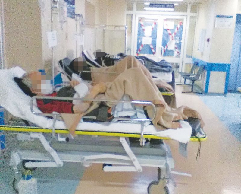 Η φωτογραφία, που απεικονίζει την κατάσταση που προσπαθεί να κρύψει η πανικόβλητη κυβέρνηση, είναι αυτή που έστειλε στην «κυριακάτικη δημοκρατία» νοσηλευόμενη στον «Ευαγγελισμό». Το μεσημέρι της Πέμπτης στον 5ο όροφο του νοσοκομείου, η εικόνα στα δωμάτια και τους διαδρόμους έμοιαζε δυστυχώς με νοσοκομείο εκστρατείας. Η Γ΄Παθολογική Κλινική φιλοξενεί ασθενείς χωρίς κορωνοϊό, όπου κυριολεκτικά ο ένας είναι πάνω στον άλλον. Οχι μόνο σε δωμάτια με έξι κλίνες, όπου έχουν τοποθετηθεί επιπλέον δύο ράντζα, αλλά, όπως φαίνεται και στη φωτογραφία, τουλάχιστον οκτώ ράντζα είναι τοποθετημένα κατά μήκος του διαδρόμου!