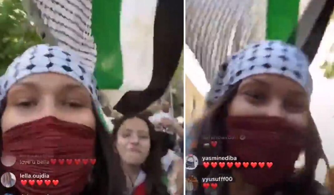 Η Χαντίντ η οποία έχει καταγωγή από την Παλαιστινη παρευρεύθηκε σε διαδήλωση που έλαβε χώρα στη Νέα Υόρκη και εμφανίστηκε φορώντας στο κεφάλι της το παραδοσιακό μαντίλι, γεγονός που προκάλεσε την αντίδραση του Ισραήλ.