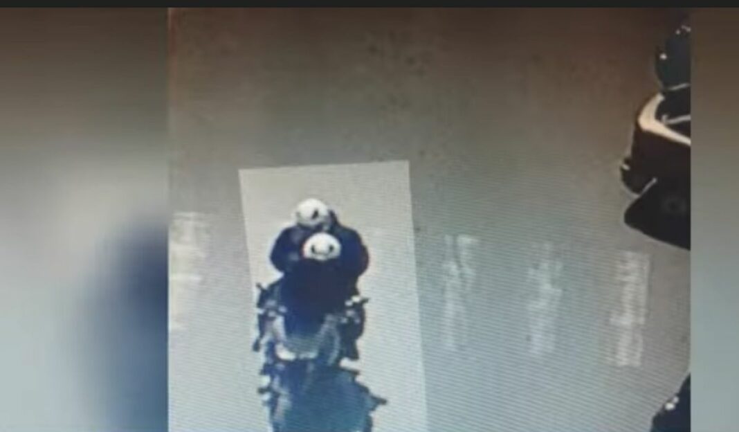 Στο φωτογραφικό στιγμιότυπο που είναι από κάμερα ασφαλείας φαίνονται οι δύο εκτελεστές της 37χρονης πάνω στη μηχανή φορώντας λευκά κράνη και στολές μηχανής, προκειμένου να μοιάζουν περισσότερο με αστυνομικούς για να μην κινήσουν υποψίες.
