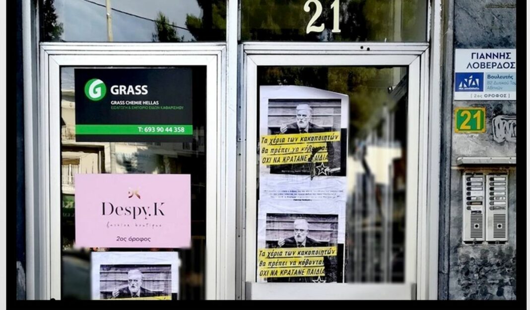 Ομάδα της αναρχικής συλλογικότητας Ρουβίκωνας άπλωσε έξω από το γραφείο του βουλευτή της ΝΔ Γιάννη Λοβέρδου πανό με υπογραφή «Φεμινιστικός τομέας Ρουβίκωνα», πέταξαν τρικάκια και κόλλησαν αφίσα που κάνει λόγο για κακοποιητές.