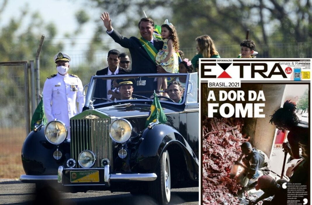 Οι φωτογραφίες που απεικονίζουν πολίτες να ψάχνουν για φαγητό στην καρότσα φορτηγού που μεταφέρει κουφάρια ζώων, τραβήχτηκαν στο Ρίο την περασμένη εβδομάδα από τον βραβευμένο φωτορεπόρτερ Ντομίνγκο Πιξότο, αποκαλύπτουν τη φτώχεια και την πείνα που μαστίζει το πολυπληθέστερο κράτος της Λατινικής Αμερικής, τη Βραζιλία, όπου εκατομμύρια άνθρωποι έχουν βυθιστεί στην ανέχεια, λόγω της εσφαλμένης διαχείρισης της πανδημίας του κορωνοϊού από τον πρόεδρο Μπολσονάρου και της εκτίναξης του πληθωρισμού.