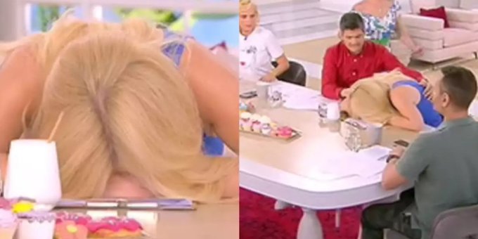 «Παιδιά δεν νιώθω πολύ καλά» είπε και έχασε τις αισθήσεις της με το κεφάλι της, να πέφτει στο τραπέζι. Οι συνεργάτες της έσπευσαν κοντά της, η Φαίη Σκορδά κάλεσε για βοήθεια και πέρασε γρήγορα στη στήλη της μαγειρικής.