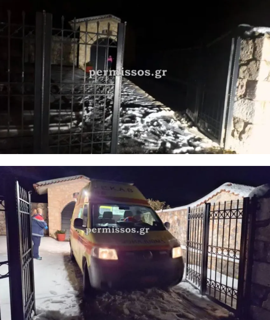 Με συνοδεία αστυνομικών και πυροσβεστών, ο δήμαρχος Αλιάρτου έφτασε στο μοναστήρι που βρίσκεται σε υψόμετρο 700 μέτρων, το οποίο ήταν αποκλεισμένο λόγω των πυκνών χιονοπτώσεων.