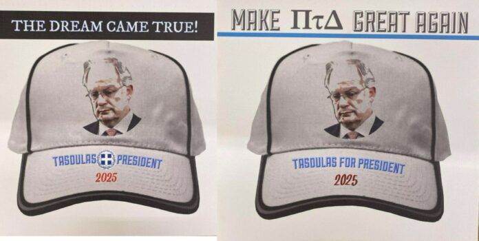 Το ένα κάδρο έγραφε «Make ΠτΔ Great Again» και «Tasoulas for President». Το δεύτερο κάδρο έγραφε «The Dream Came True» και «Tasoulas President 2025». Ο Τραμπ εμπνέει και τους κοινοβουλευτικούς συντάκτες.