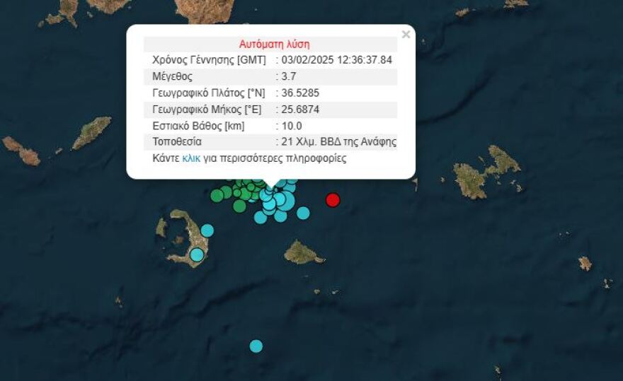 Το Γεωδυναμικό Ινστιτούτο αναφέρει ότι είχαμε δόνηση 3,7 βαθμών στις 19:52, 2,7 βαθμών στις 20:09 και, δύο λεπτά αργότερα άλλη μία 3,4 βαθμών.