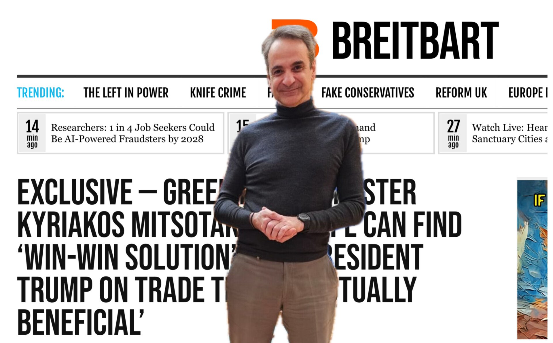 Τι έκανε λοιπόν σήμερα ο Τιραμόλα των Βαλκανίων; Μπορεί να φαίνεται απίστευτο, όμως ο Κυριάκος Μητσοτάκης έδωσε συνέντευξη στο μισητό Breitbart! Συνέντευξη που μάλιστα αποτελεί «ανθοδέσμη» στον πρόεδρο Τραμπ, επιβεβαιώνοντας πλήρως την αποκάλυψη του Αμερικανού προέδρου πως κάποιοι ηγέτες έχουν αρχίσει και του «φιλάνε τον ποπό»…