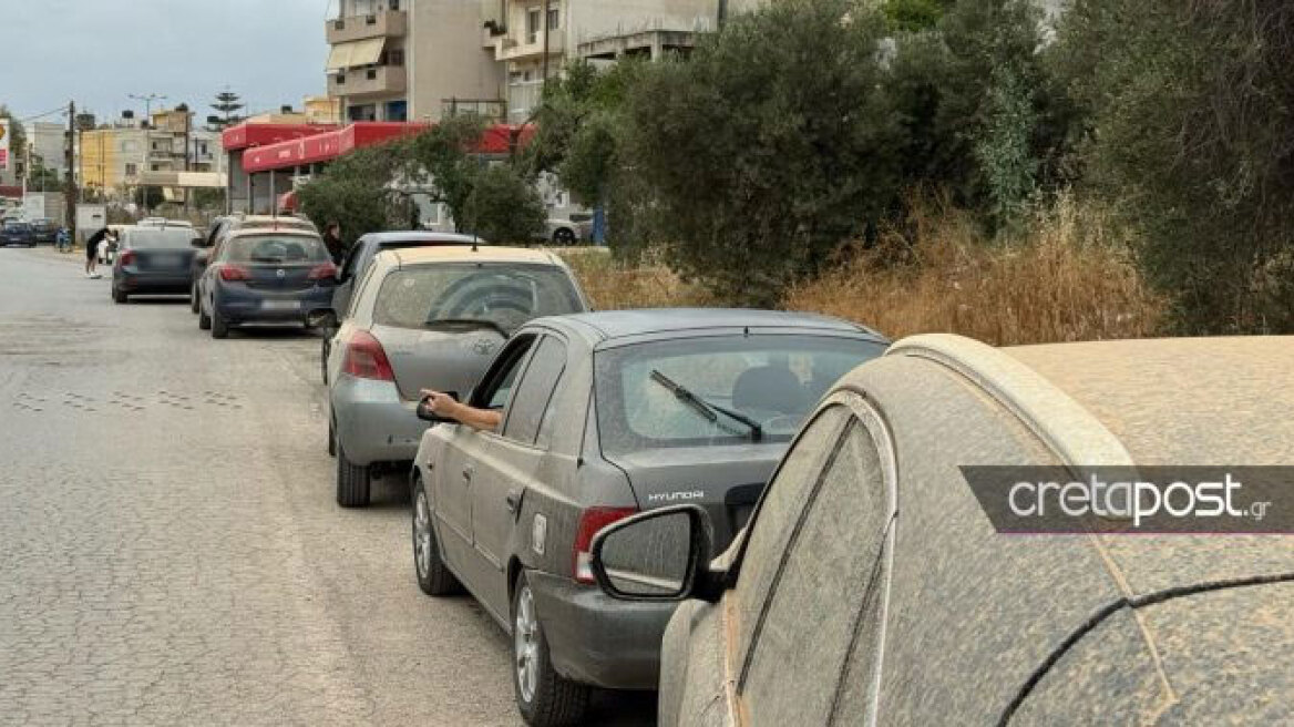 Αντίστοιχη εικόνα και στα Χανιά, με πολίτες να καταφθάνουν μαζικά από νωρίς. «Το αυτοκίνητο δεν αναγνωριζόταν. Ήταν κυριολεκτικά καφέ, ούτε πινακίδα δεν φαινόταν», μας λέει οδηγός στο Ακρωτήρι.