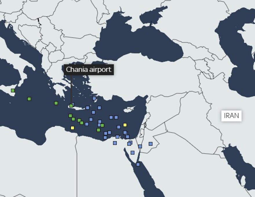 Πενήντα δύο στρατιωτικά αεροσκάφη των ΗΠΑ εντοπίστηκαν να πετούν πάνω από την ανατολική Μεσόγειο προς τη Μέση Ανατολή μεταξύ Δευτέρας και Πέμπτης.