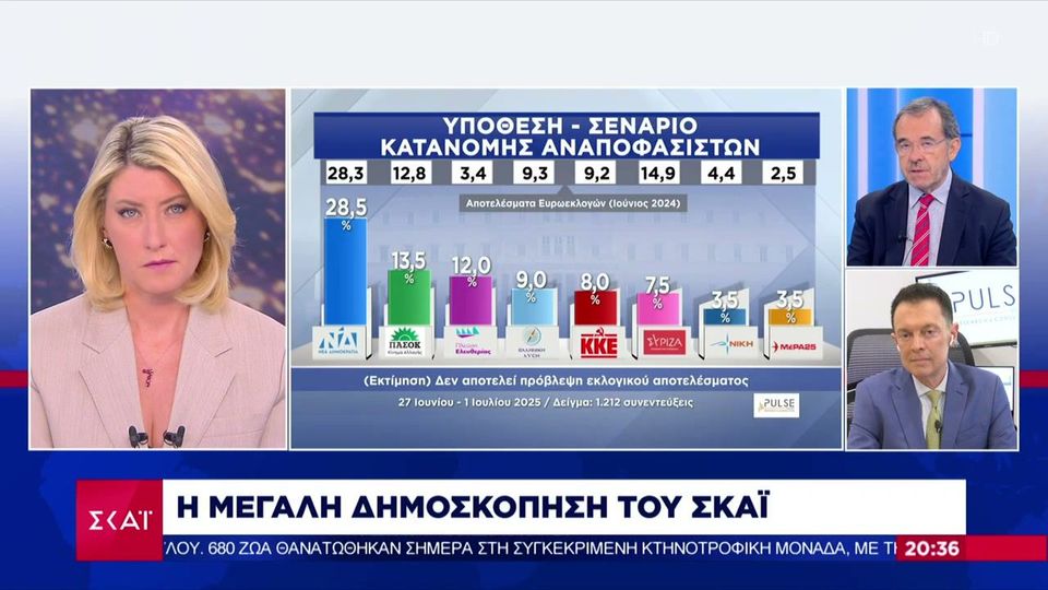 Δημοσκόπηση ΣΚΑΪ: Πώς διαμορφώνεται η πρόθεση ψήφου - Το