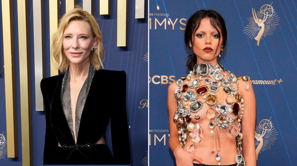 Η Τζένα ΟρτέγκαΑπό την άλλη η Μπλάνσετ επέλεξε μια μαύρη βελούδινη φόρμα με βαθύ ντεκολτέ και βάτες. Το ρούχο είχε ανοιχτή πλάτη και ήταν διακοσμημένο με έναν αστραφτερό μαύρο φιόγκο στη μέση.