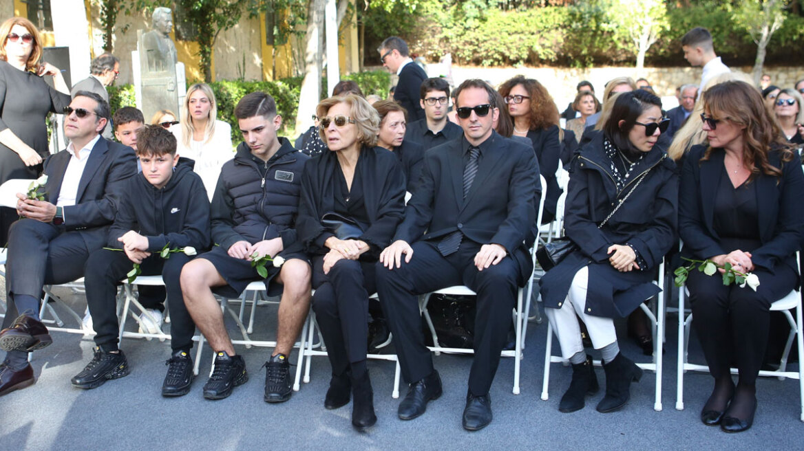 Η χήρα του Αλέκου Φλαμπουράρη, Εύη ξεσπά σε λυγμούς υποβασταζόμενη από τον γιο τους Μιχάλη