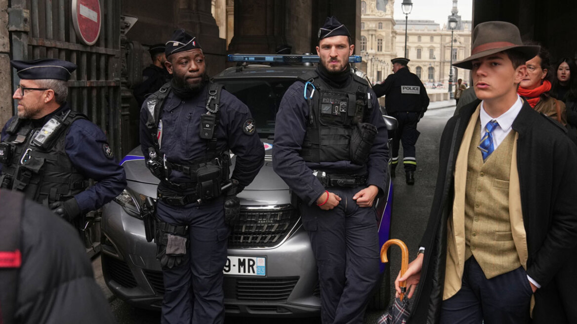 Στη φωτογραφία που τράβηξε ένας φωτογράφος του Associated Press στον «τόπο του εγκλήματος», εμφανίζονται τρεις αστυνομικοί να ακουμπούν σε ένα ασημί αυτοκίνητο που φράσσει την είσοδο του Λούβρου, λίγες ώρες μετά τη θεαματική ληστεία των γαλλικών βασιλικών κοσμημάτων. Στα δεξιά της εικόνας στέκεται μια μοναχική φιγούρα με κοστούμι, μια «πινελιά» φιλμ νουάρ μέσα σε μια σύγχρονη καταδίωξη.