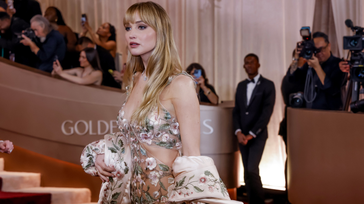 Με ένα φόρεμα που τράβηξε τα φλας των φωτογράφων εμφανίστηκε στο κόκκινο χαλί για τις Χρυσές Σφαίρες η Τζένιφερ Λόρενς.