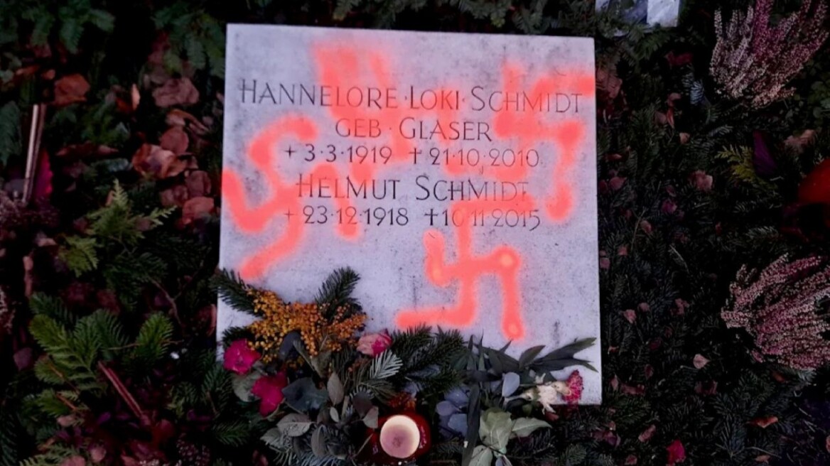Φωτογράφος που επισκέφτηκε σήμερα Κυριακή νεκροταφείο στο Αμβούργο ανακάλυψε ότι άγνωστοι είχαν ζωγραφίσει ναζιστικά σύμβολα στον τάφο του καγκελάριου Χέλμουτ Σμιτ και της συζύγου του Χανελόρε.
