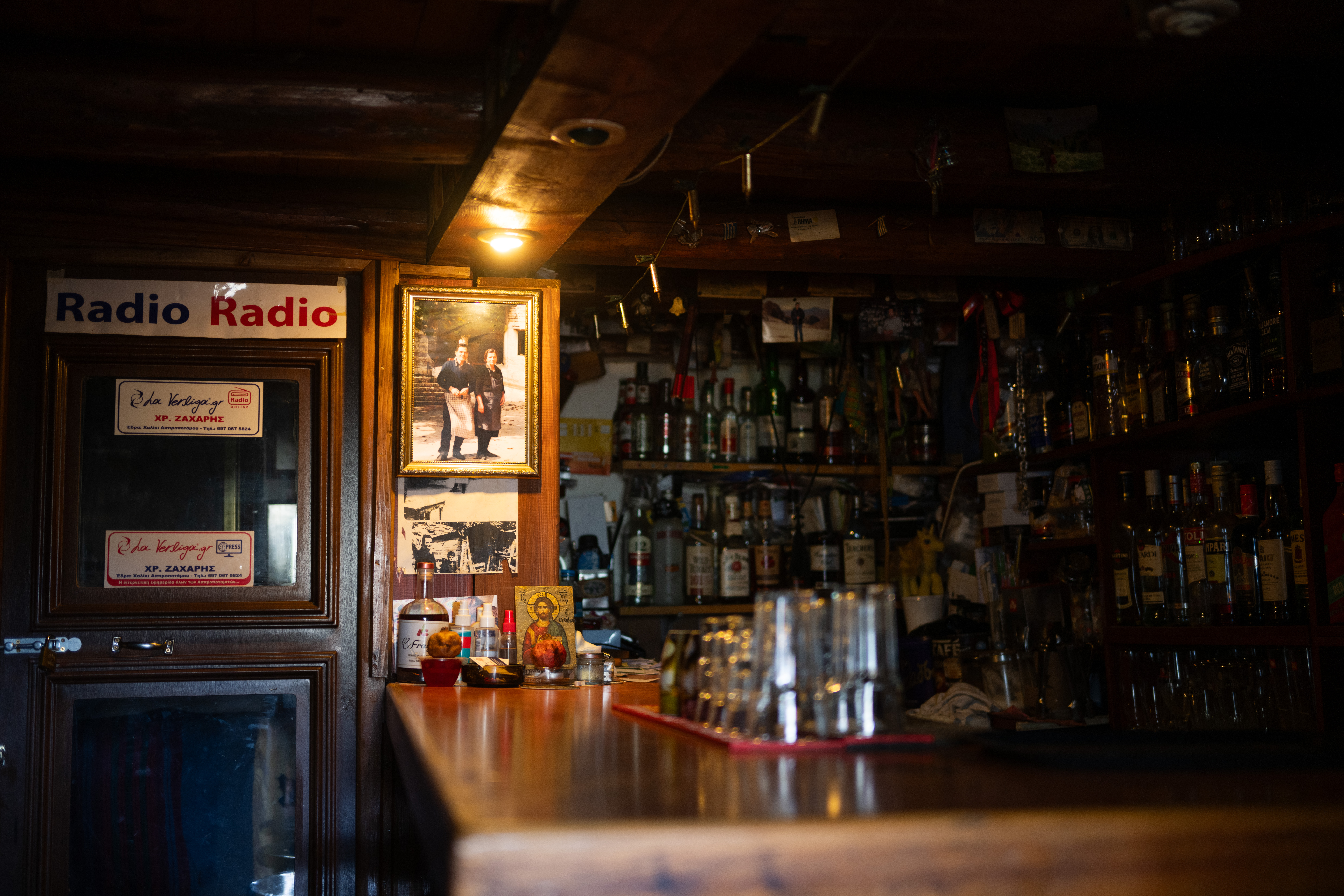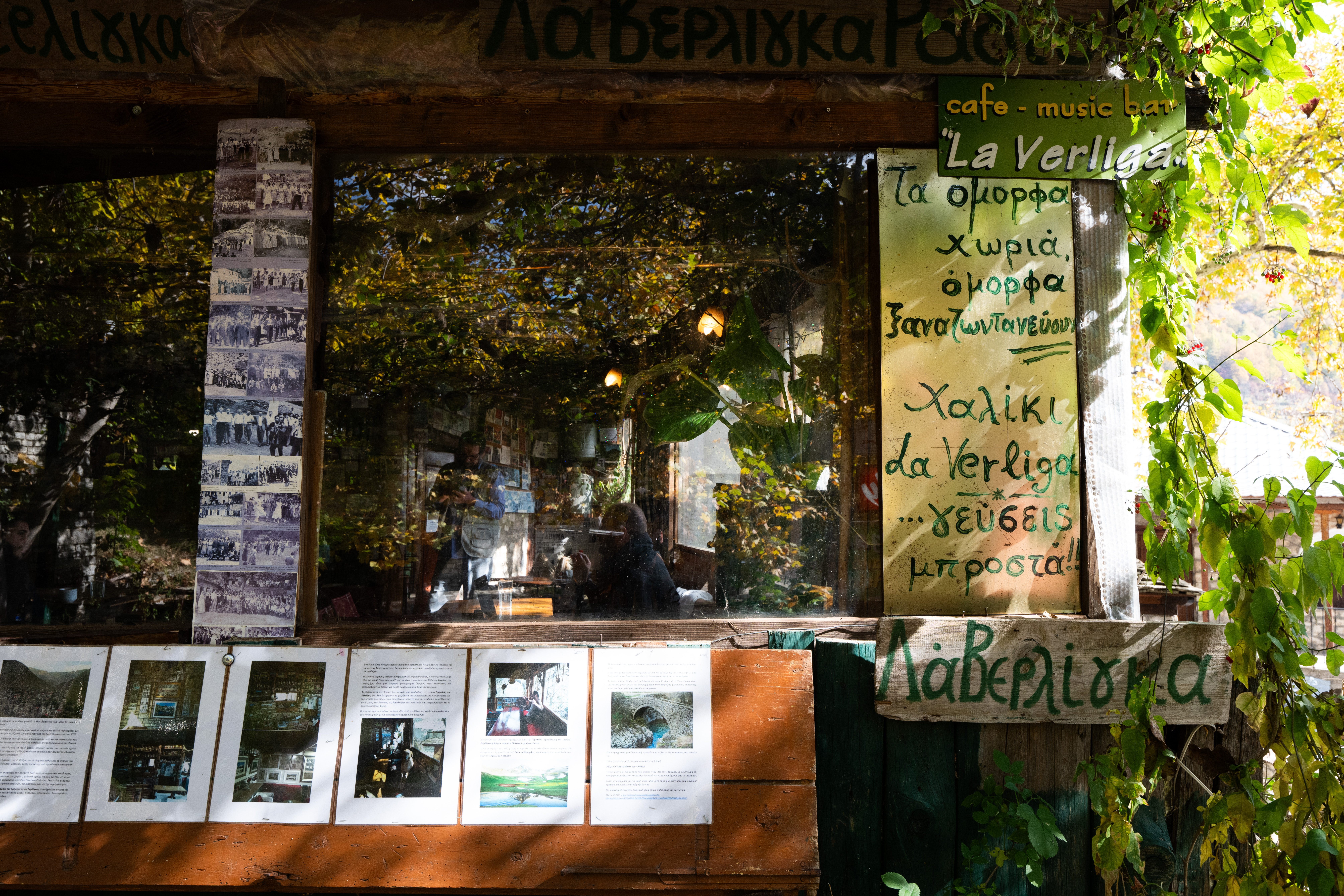 Το καφενείο στέκει σαν φάρος στην πλατεία του χωριού, με τον καπνό να υψώνεται από την καμινάδα της ξυλόσομπας σαν σινιάλο καλωσορίσματος. Μπαίνοντας, η ζεστασιά σε τυλίγει αμέσως -όχι μόνο από τη φωτιά της σόμπας-, αλλά κυρίως από το πλατύ χαμόγελο του Χρήστου. Χαμηλά παίζει στα ηχεία, το διαδικτυακό ραδιόφωνο που έχει δημιουργήσει ο Χρήστος, το laverliga.gr διατηρώντας ζωντανή την μουσική παράδοση του τόπου.