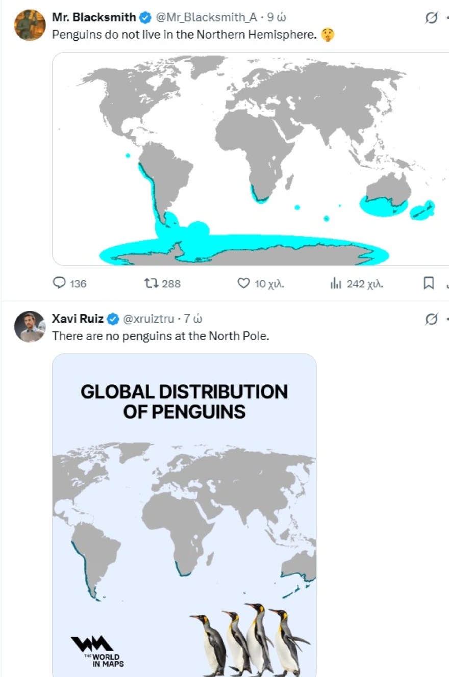 Πολλοί χρήστες σχολίασαν ότι οι πιγκουίνοι δεν ζουν στη Γροιλανδία ή στο Βόρειο Ημισφαίριο.