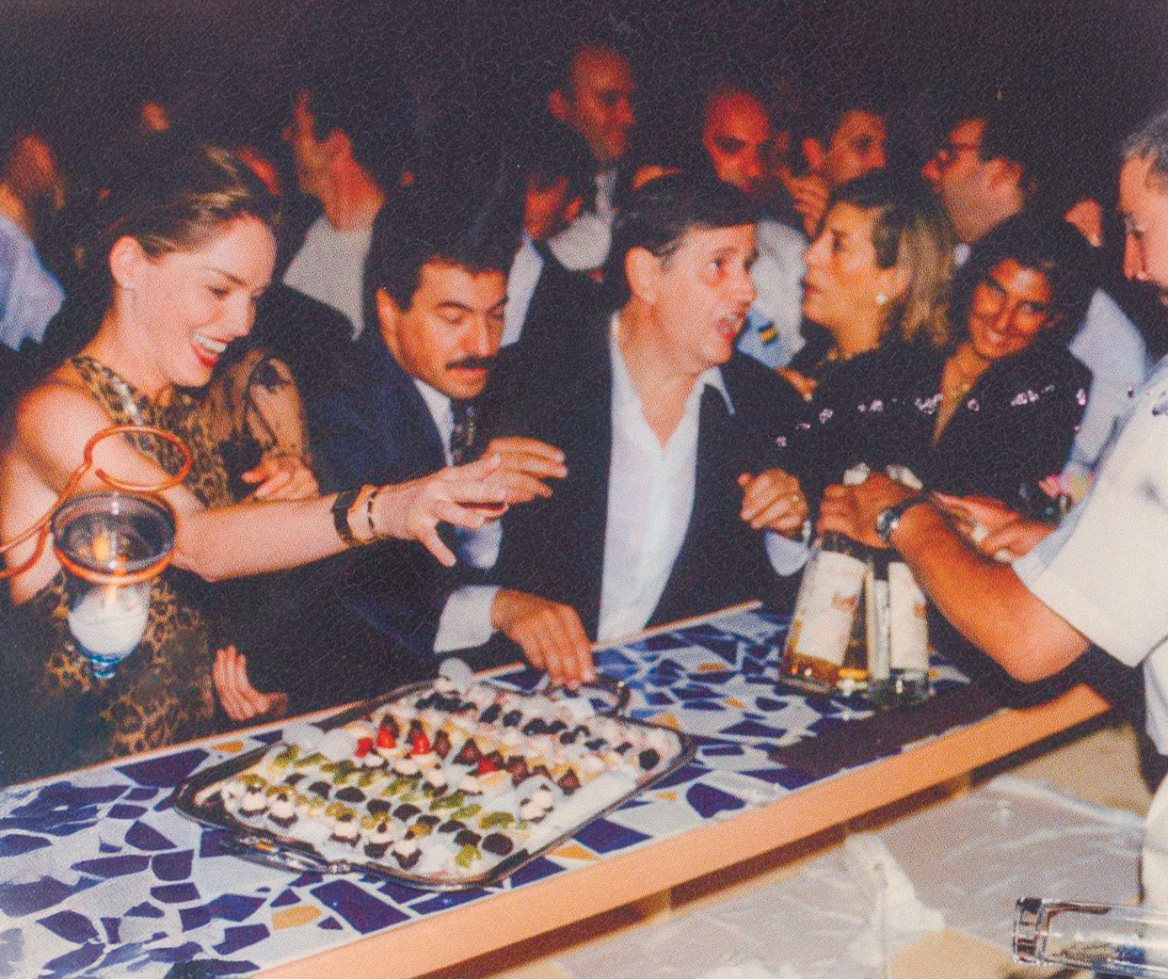 Ο κοσμηματοπώλης με τη Σάρον Στόουν στο πάρτυ που δόθηκε στο «Ακρωτήρι»Ενα κοπάδι πρόβαταΒρέθηκαν πάνω σε σκάφος μαζί με τον Βενσάν Κασέλ και τη Μόνικα Μπελούτσι, που τότε ήταν παντρεμένοι, έφαγαν μαζί με τον Στίβεν Σπίλμπεργκ στο Φισκάρδο και με τον Τομ Χανκς στην Αντίπαρο. Ωστόσο, τα θεματικά πάρτυ που διοργάνωσε αυτός ο επίμονος κοσμηματοπώλης άφησαν εποχή, ειδικά το πρώτο αποκριάτικο που έλαβε χώρα στις 4 Μαρτίου του 2000 στο «Ekali Club». Το θέμα ήταν η Βενετία και ο χώρος της πισίνας μεταμορφώθηκε κυριολεκτικά σε ένα εντυπωσιακό βενετσιάνικο κανάλι όπου έπλεαν γόνδολες, ενώ ένα κουαρτέτο εγχόρδων έπαιζε αναγεννησιακή μουσική. Ο ίδιος ντύθηκε δόγης, η σύζυγός του δόγισσα, ενώ οι εκατοντάδες καλεσμένοι τους επέλεξαν ανάλογες στολές και οι κυρίες εκπληκτικές μάσκες.