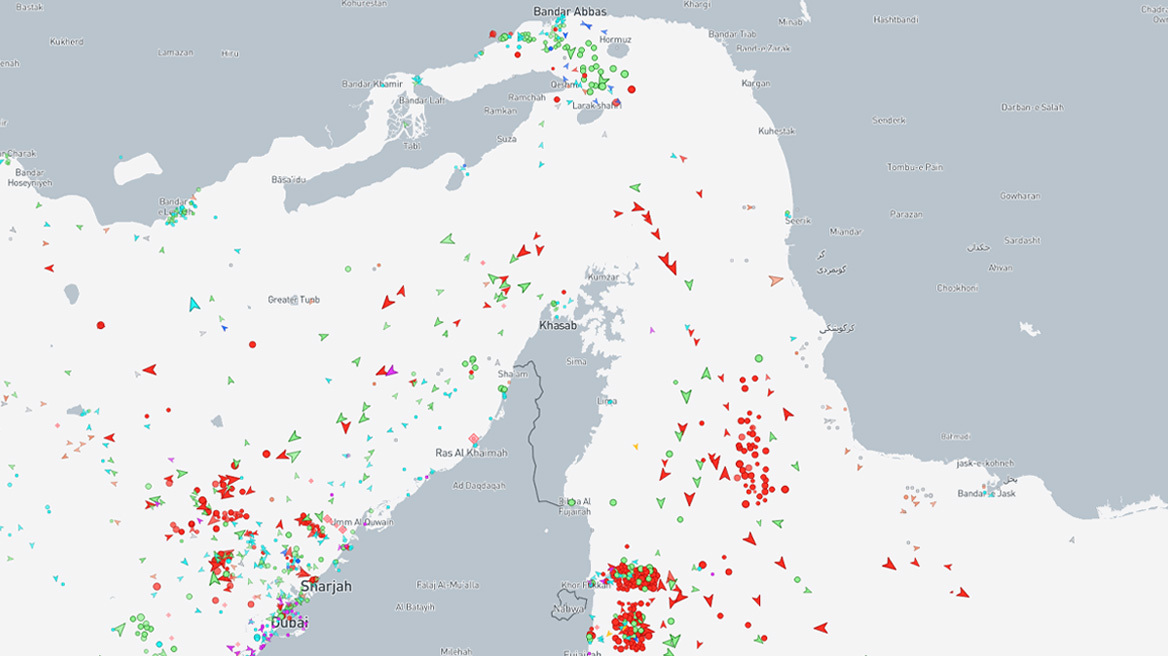 Σύμφωνα με τη MarineTraffic, μεγάλος αριθμός δεξαμενόπλοιων έχει αγκυροβολήσει σε ασφαλή απόσταση βορειοδυτικά και νότια των Στενών, ενώ περιορισμένος αριθμός συνεχίζει τη διέλευση. Η εικόνα αποτυπώνει την επιφυλακτικότητα των πλοιοκτητών, καθώς πρόκειται για κρίσιμο πέρασμα του παγκόσμιου εμπορίου πετρελαίου.