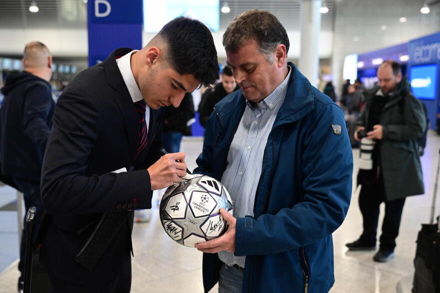 Στο αεροδρόμιο οι παίκτες του Ολυμπιακού συνάντησαν κάποιους οπαδούς της ομάδας που τους ζήτησαν αυτόγραφα και φωτογραφίες.