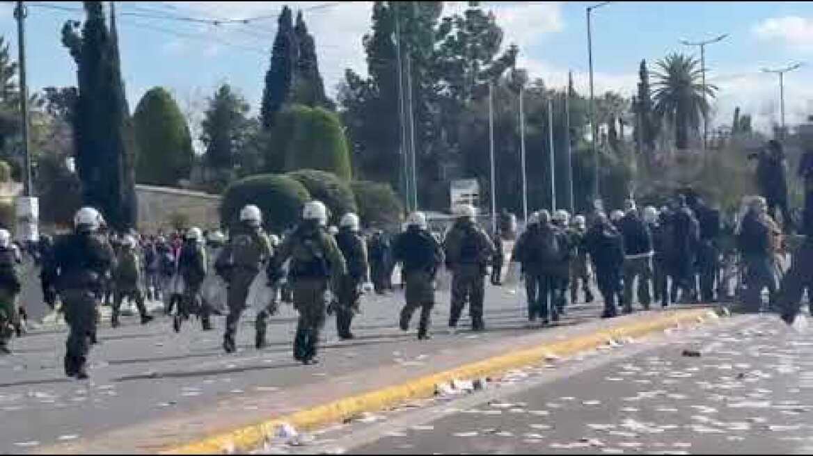 Χημικά και χειροβομβίδες κρότου λάμψης χρησιμοποίησαν οι δυνάμεις της αστυνομίας προσπαθώντας να απομακρύνουν τους ταραχοποιούς που επιχείρησαν να αμαυρώσουν την συγκέντρωση μνήμης για την τραγωδία των Τεμπτών.