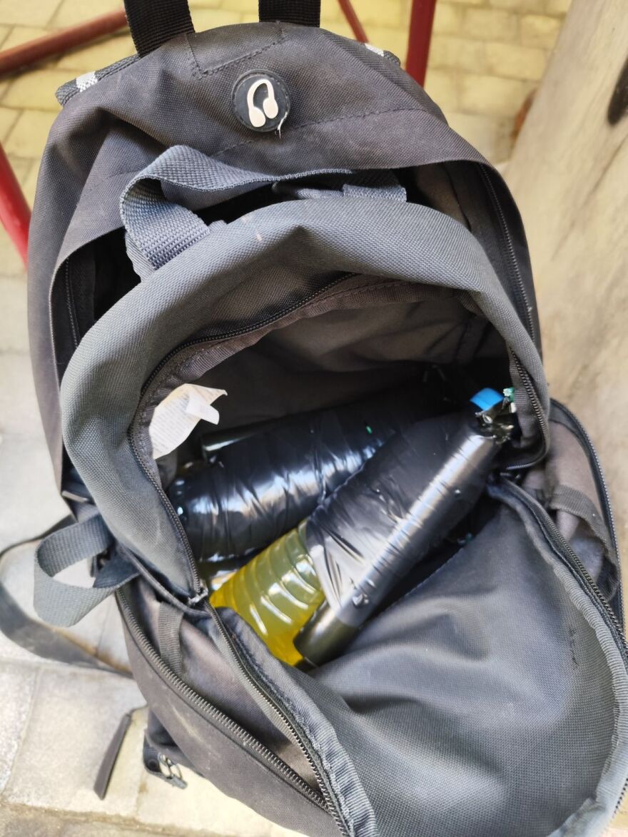 Σε στοά επί της Ερμού, βρέθηκαν μέσα σε πλαστική σακούλα μολότοφ υπό... κατασκευή. Στη σακούλα υπήρχαν 7-8 μπουκάλια βενζίνης