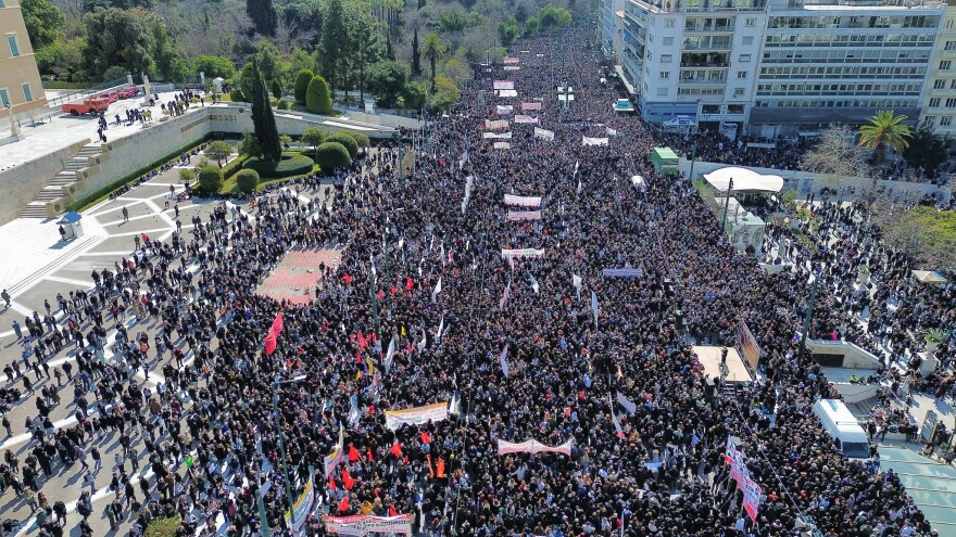 Χιλιάδες πολίτες βρίσκονται αυτή την ώρα στο Σύνταγμα, δηλώνοντας το «παρών» στην κινητοποίηση για την επέτειο των τριών ετών από την τραγωδία των Τεμπών.